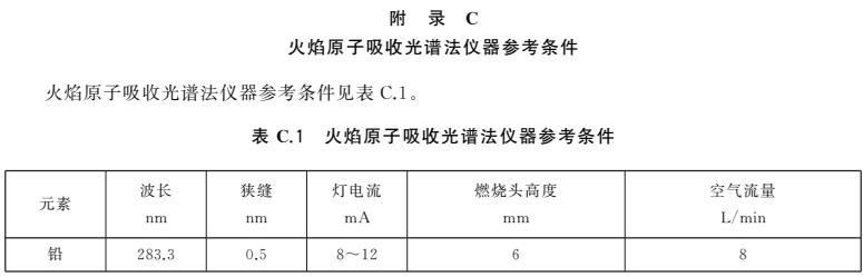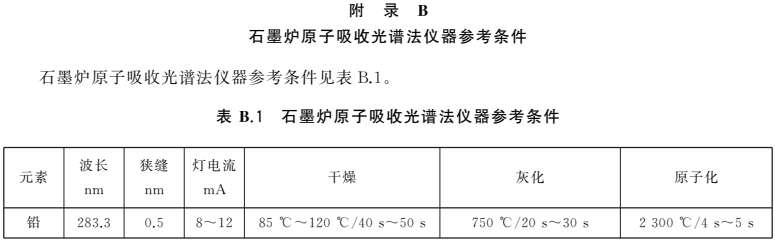 注:可根據儀器的靈敏度及樣品中鉛的實際含量確定標準系列溶液中鉛的質量濃度。