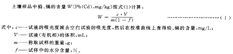 上壤樣品中鉛、鎘的含量WPb(Cd),mg/kg)按式(1)計(jì)算: